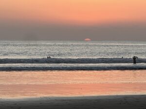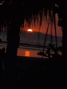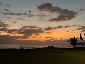 From Manuel Antonio, we took a couple buses to get to Jacó. Again, cheap and easy. In fact, we are starting to get the hang of bus transport…the intention was to go to the Jaco station, then Uber to the condo, but I realized we were going to go right by the access road to said condo, so I pushed the button and we exited early. That put us there B4 checkin time, but there was an excellent coffee shop at the entrance that served refreshing smoothies and allowed us to camp for a couple hours.