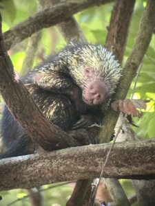 In Manuel Antonio we had a SPECTACULAR AirBNB which was centrally located to many restaurants and to a public bus that, for a whopping $0.75, would take us to either Quepos (a larger town) or the park itself. Our host arranged a private hiking tour of the park with an EXCELLENT guide. The number of critters he showed us through his telescope and expertise was amazing. It fully requires both…as my Uncle once said about fancy cameras…you still have to know what to point them at. Although this park was almost overwhelmingly busy, Our guide managed to keep us out of the crowds for the most part, while revealing many wonderous critters and plants.