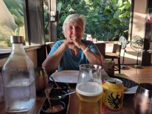 The Jacó condo was a bit back from the beach, but only a very easy walk away. Once on the beach, there is a little tent with a lovely fellow named Estéban, who caters to every beach need. This included Chaise Loungers and umbrellas ($20/day), boogie boards ($10/day) and SURF LESSONS. These were $50…guaranteed…if you don’t get up and ride a wave, you don’t pay, said Estéban. I decided that was something I needed to do!? Anyway, there is video evidence of me, “surfing” just long enough to owe Esteban $50, and without necessitating a trip to the hospital. So a COMPLETE SUCCESS, and just as with Bungee Jumping, once is quite enough for me!!!
