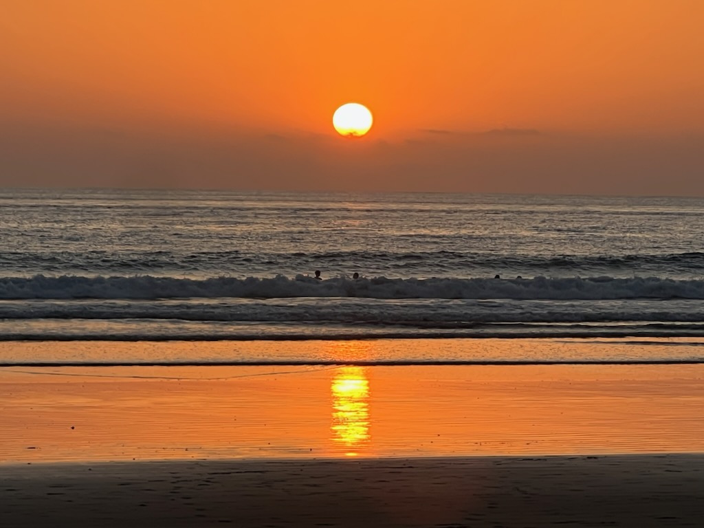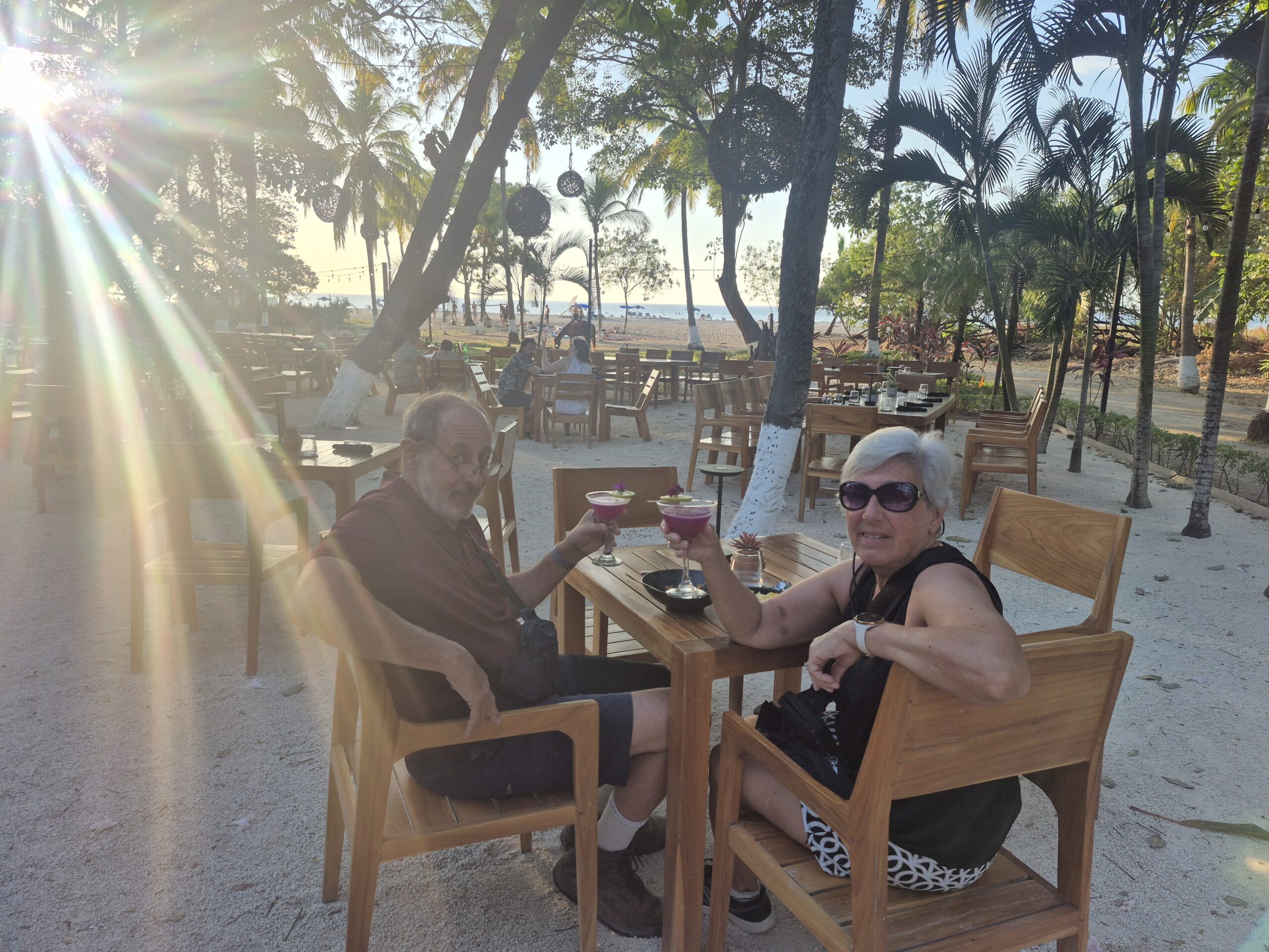We did go to the beach almost every day for at least a couple of hours. The beach is delightful…about a mile of Sand with a gentle slope in to the water and a reasonable but gentle surf. Perfect for a dip, senior citizen body surfing or Boogie Boards. We actually bought a couple of Bag Chairs when we were in Tamarindo, and have been hauling them all around Costa Rica, so even though Esteban’s chairs were more comfy, we used our own most of the time if we were only planning to be there for an hour or so. Esteban’s we utilized for full beach days. And, there was a beachside bar offering all manner of cold beverages and a beachside restaurant offering very tasty sustenance.